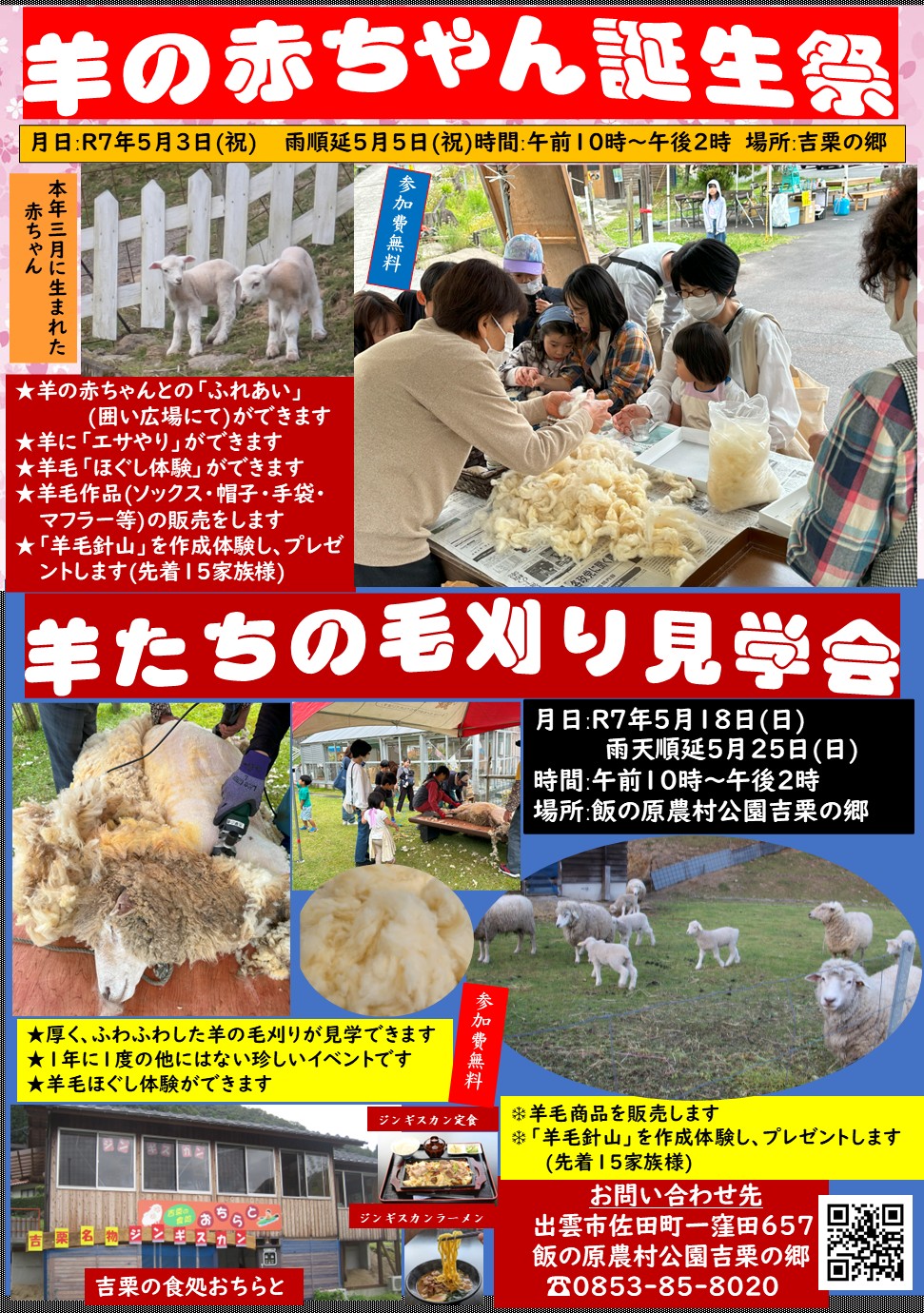 次回は、5月18日(土)に「羊たちの毛刈り見学会」を開催します。